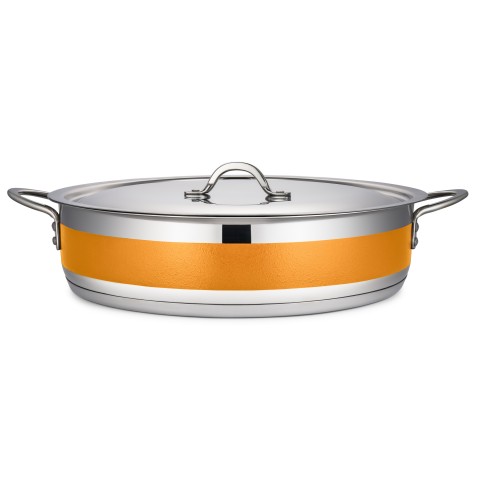Country French X Pot, 9 qt., 14-3/4" dia. x 3-3/8"H, round, with lid, induction bottom, stainless steel, orange