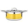 Country French X Pot, 1 qt. 22 oz., 7" dia. x 3"H, round, with lid, induction bottom, stainless steel, yellow