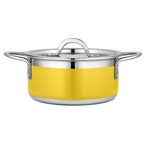 Country French X Pot, 2 qt. 9 oz., 7-3/4" dia. x 3-1/2"H, round, with lid, induction bottom, stainless steel, yellow