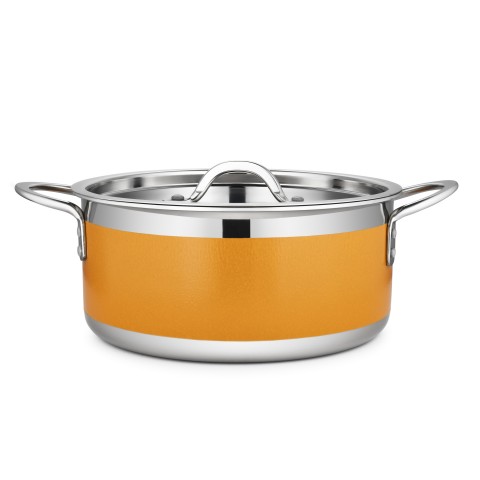 Country French X Pot, 4 qt. 9 oz., 9-3/8" dia. x 4-3/8"H, round, with lid, induction bottom, stainless steel, orange