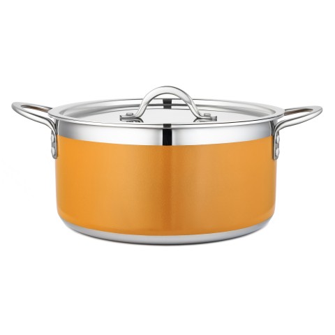 Country French X Pot, 5 qt. 22 oz., 10-1/8" dia. x 4-3/4"H, round, with lid, induction bottom, stainless steel, orange