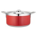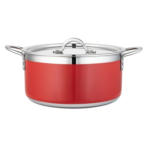 Country French X Pot, 5 qt. 22 oz., 10-1/8" dia. x 4-3/4"H, round, with lid, induction bottom, stainless steel, red