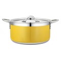 Country French X Pot, 5 qt. 22 oz., 10-1/8" dia. x 4-3/4"H, round, with lid, induction bottom, stainless steel, yellow