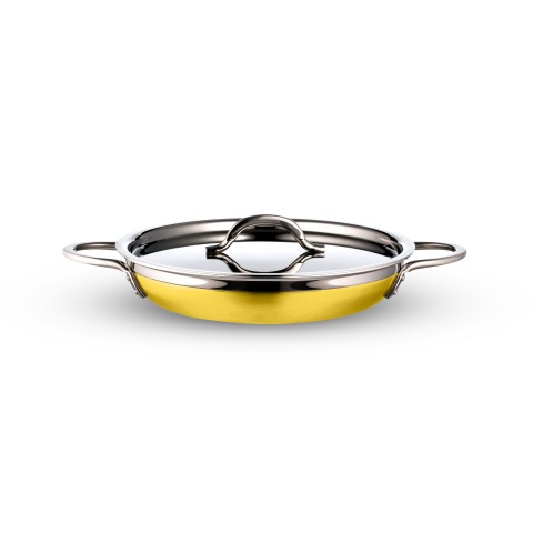 Country French X Saute Pan/Skillet, 1 qt. 20 oz., 10-1/8" dia. x 1-7/8"H, round, with lid, (2) handles, induction bottom, stainless steel, yellow