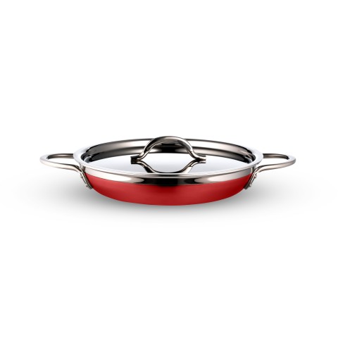 Country French X Saute Pan/Skillet, 2 qt. 12 oz., 11" dia. x 2-1/4"H, round, with lid, (2) handles, induction bottom, stainless steel, red