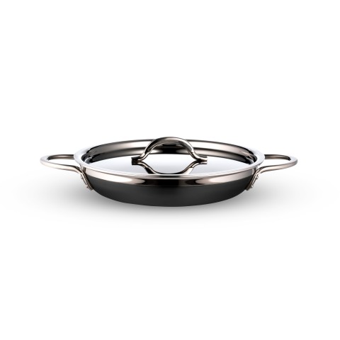 Country French X Saute Pan/Skillet, 3 qt. 4 oz., 11-3/4" dia. x 2-3/8"H, round, with lid, (2) handles, induction bottom, stainless steel, black