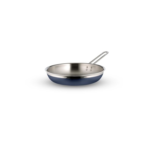 Country French X Saute Pan/Skillet, 3 qt. 4 oz., 11-3/4" dia. x 2-3/8"H, round, without lid, long handle, induction bottom, stainless steel, cobalt blue