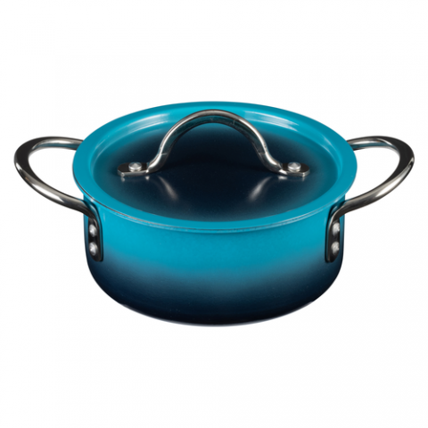 Country French X - Ombre Sauce Pot, 1 qt 22 oz, 7" x 3" , Round, With Lid, (2) 2" Round Riveted Handles, Oven & Dishwasher Safe, Induction Ready, 5 Ply, Stainless Steel, Caribbean Blue