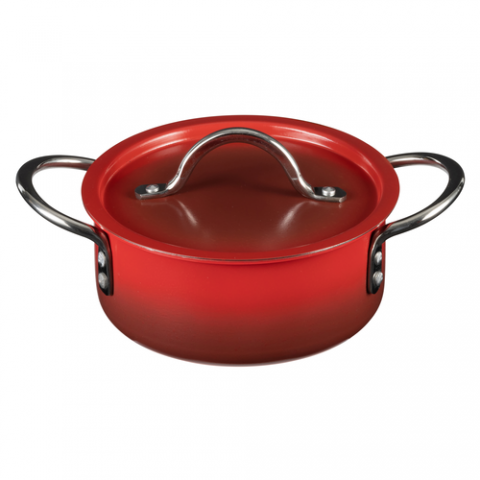 Country French X - Ombre Sauce Pot, 1 qt 22 oz, 7" x 3", Round, With Lid, (2) 2" Round Riveted Handles, Oven & Dishwasher Safe, Induction Ready, 5 Ply, Stainless Steel, Crimson Red