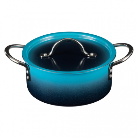 Country French X - Ombre Sauce Pot, 2 qt 9 oz, 7-3/4 DIA X 3-1/2H, Round, With Lid, (2) 2" Round Riveted Handles, Oven & Dishwasher Safe, Induction Ready, 5 Ply, Stainless Steel, Caribbean Blue