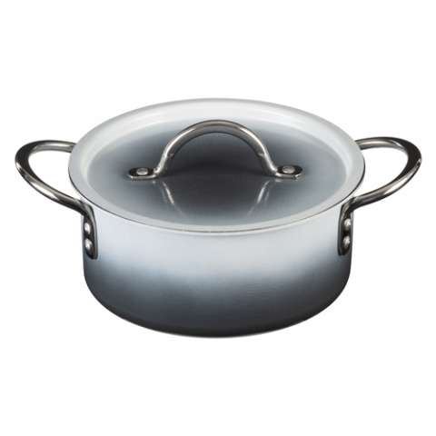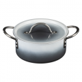 Country French X - Ombre Sauce Pot, 2 qt 9 oz, 7-3/4 DIA X 3-1/2H, Round, With Lid, (2) 2" Round Riveted Handles, Oven & Dishwasher Safe, Induction Ready, 5 Ply, Stainless Steel, Shadow Gray