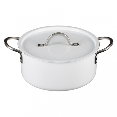 Country French X - Ombre Sauce Pot, 4 qt 9 oz, 9.4″ Dia x 4.4″ H, Round, With Lid, (2) 2" Round Riveted Handles, Oven & Dishwasher Safe, Induction Ready, 5 Ply, Stainless Steel, White