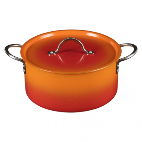 Country French X - Ombre Sauce Pot, 5 qt 22 oz, 10″ Dia x 4.75″ H, Round, With Lid, (2) 2" Round Riveted Handles, Oven & Dishwasher Safe, Induction Ready, 5 Ply, Stainless Steel, Tangerine
