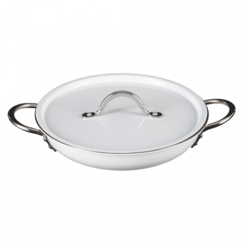 Country French X - Ombre Saute Pan, 1 qt 20 oz, 10″ Dia x 2″ H, Round, With Lid, (2) 2" Round Riveted Handles, Oven & Dishwasher Safe, Induction Ready, 5 Ply, Stainless Steel, White