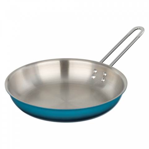 Country French X - Ombre Saute Pan, 2 qt 12 oz, 11″ Dia x 2″ H, Round, Without Lid, (1) 7" Long Riveted Handles, Oven & Dishwasher Safe, Induction Ready, 5 Ply, Stainless Steel, Caribbean Blue