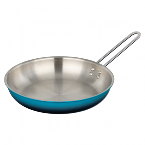 Country French X - Ombre Saute Pan, 3 qt 4 oz, 11.25″ Dia x 2.75″ H, Round, Without Lid, (1) 7" Long Riveted Handles, Oven & Dishwasher Safe, Induction Ready, 5 Ply, Stainless Steel, Caribbean Blue