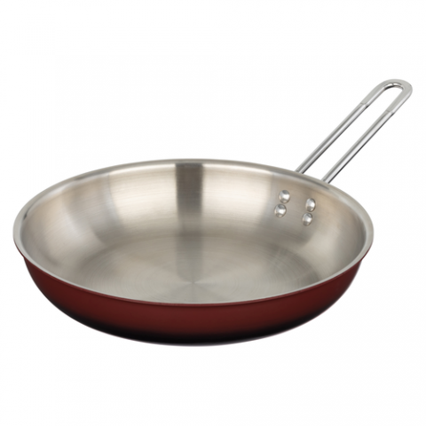 Country French X - Ombre Saute Pan, 3 qt 4 oz, 11.25″ Dia x 2.75″ H, Round, Without Lid, (1) 7" Long Riveted Handles, Oven & Dishwasher Safe, Induction Ready, 5 Ply, Stainless Steel, Merlot