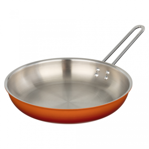 Country French X - Ombre Saute Pan, 3 qt 4 oz, 11.25″ Dia x 2.75″ H, Round, Without Lid, (1) 7" Long Riveted Handles, Oven & Dishwasher Safe, Induction Ready, 5 Ply, Stainless Steel, Tangerine