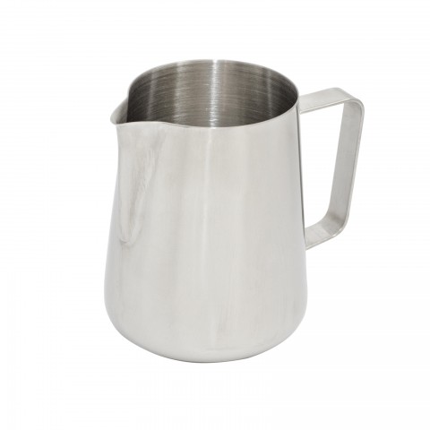 Contemporary Milk Frother, 20 oz., 5" x 4-5/16", tapered spout, wide bottom, large handle, dishwasher safe, 18/8 stainless steel, mirror finish