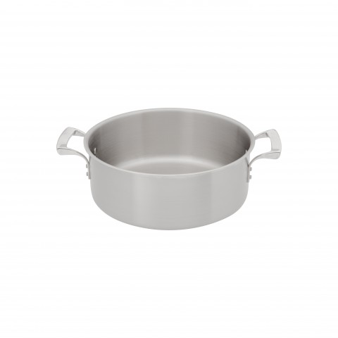 Thermalloy® Brazier, 15 qt., 14" x 5-1/2"H, without cover, (2) oversized stay cool hollow cast riveted handles, operates with gas/electric/ceramic/halogen/induction, stainless steel with 1/4" aluminum core, natural finish, NSF (cash & carry packaging)