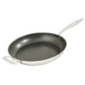 Thermalloy® Deluxe Fry Pan, 14" dia. x 2-3/10", without cover, stay cool hollow cast riveted handle, helper handle, operates with gas/electric/ceramic/halogen/induction, stainless steel with 1/4" aluminum core, Excalibur® non-stick coating, NSF (cash & carry packaging)