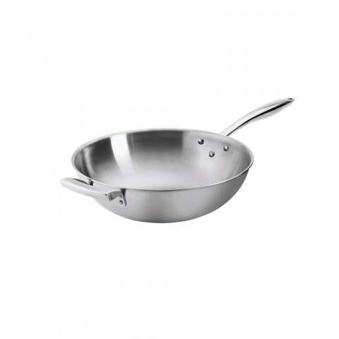 Thermalloy® Wok, 5 qt., 12" x 3-3/5", without cover, handle with off-set rivets, operates with gas/electric/ceramic/halogen/induction, tri-ply stainless steel with aluminum core, natural finish, NSF (cash & carry packaging)