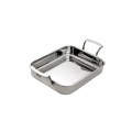Thermalloy® Roast Pan, 4.6 qt. (4.35 liter), 14" x 11-2/5" x 2", rectangular, without cover, (2) riveted ergonomic handles, operates with gas/electric/ceramic/halogen/induction, tri-ply stainless steel with aluminum core, natural finish, NSF (cash & carry packaging)