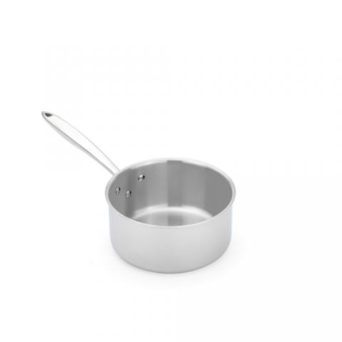 Thermalloy® Sauce Pan, 3 qt., 8" dia. x 4" H, without cover, stay cool hollow cast riveted handle, operates with gas/electric/ceramic/halogen/induction, tri-ply stainless steel with aluminum core, satin finish interior, mirror finish exterior, NSF (cash & carry packaging)
