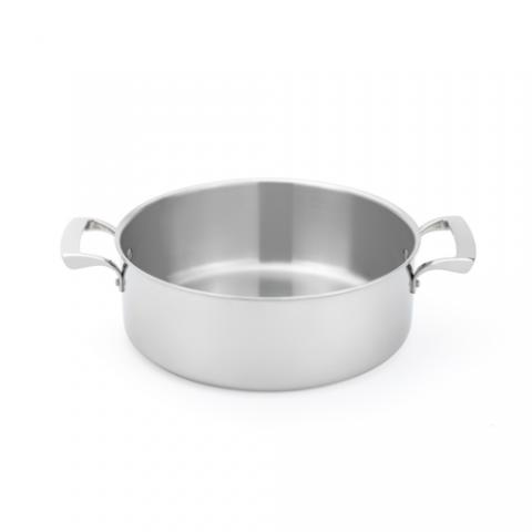 Thermalloy® Sauce Pot, 6 qt., 11" dia. x 4" H, without cover, stay cool hollow cast riveted handle, helper handles, operates with gas/electric/ceramic/halogen/induction, tri-ply stainless steel with aluminum core, satin finish interior, mirror finish exterior, NSF (cash & carry packaging)
