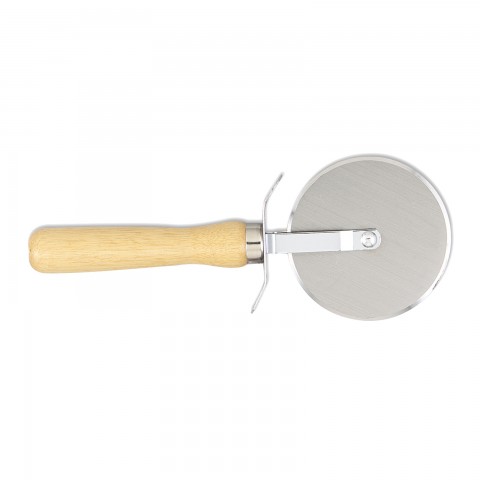 Pizza Cutter, 9"L, 4" dia. stainless steel wheel, rust proof finger guard, hardwood lacquered handle