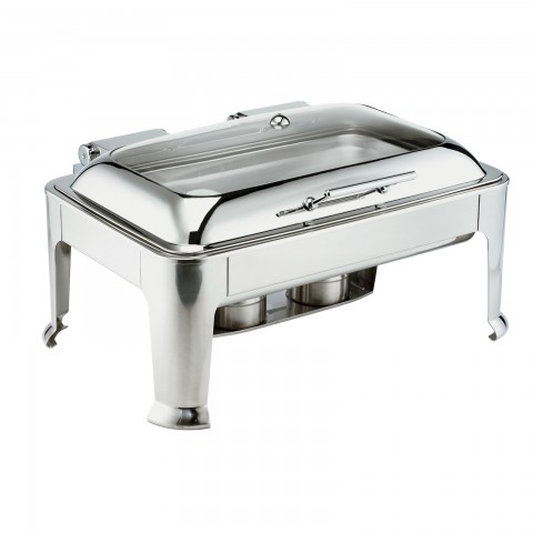 Symphony Chafer, full-size, 9 qt., 26-1/2"L x 21-1/2"W x 17-1/2"H, rectangular, slow auto close at 45° cover with stay-open position at 60°, clear glass view, stainless steel, mirror finish