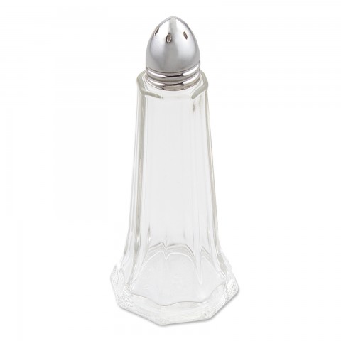 Salt & Pepper Shaker, 1.02 oz., 2" x 4-1/2"H, universal holes, tower, clear glass jar with chrome-plated top (must be purchased in quantities of 2 dozen)