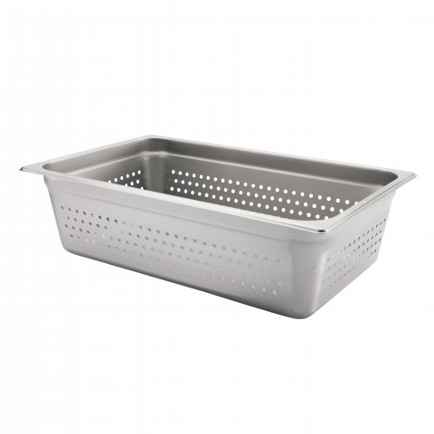 Steam Table Pan, 1/1 full size, 21.2 qt., 20-3/4"L x 12-3/4"W x 6" deep, perforated, anti-jam, 24 gauge, 18/8 stainless steel
