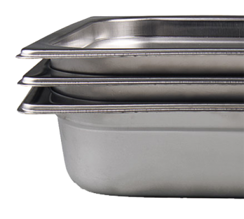 Steam Table Pan, 1/4 size, 4.6 qt., 10-3/8"L x 6-3/8"W x 6" deep, solid, reinforced edge & corners, anti-jam, 24 gauge, 304 stainless steel, NSF