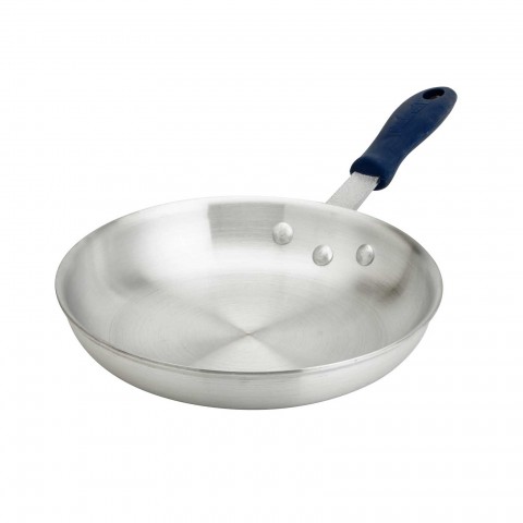 Thermalloy® Fry Pan, 7" dia. x 1-3/10", without cover, handle with off-set rivets, ergonomic removable blue silicone heat resistant sleeve (to 572°F), operates with gas/electric/ceramic/halogen, heavy weight, 5 gauge, aluminum, natural finish, NSF
