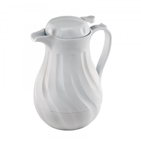 Beverage Server, 40 oz., 9-1/2"H, swirl design, thumb lever, odorless & stain resistant, polycarbonate liner, polyurethane foam insulation, includes 1 each: orange, brown, & green identification tabs, ABS plastic exterior, hand wash recommended, white
