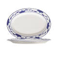 Blue Lotus Platter, 8-1/4"L x 5-3/4"W x 3/4"H, oval, rolled edge, dishwasher, oven and microwave safe, porcelain, Blue/Bone White (Sold by case)