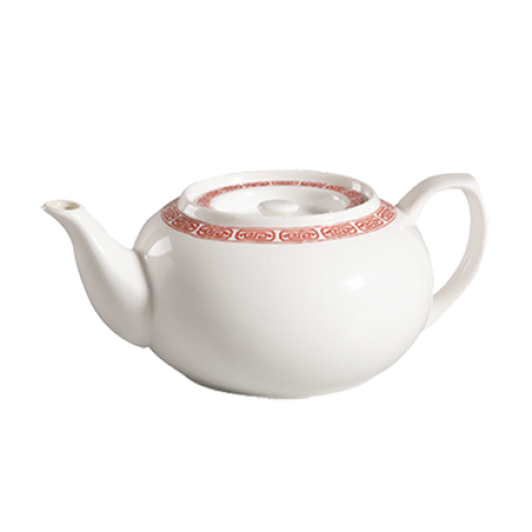 Red Gate Teapot, 32 oz., 8"L x 3-1/2"W x 5"H, with lid, dishwasher, oven and microwave safe, porcelain, Red/Bone White (Sold by case)