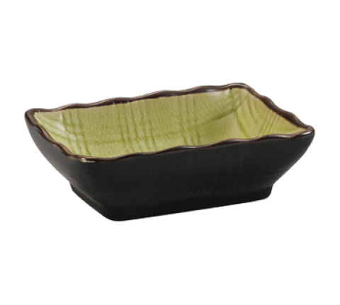Japanese Style Sauce Dish, 3-1/4"L x 2-1/2"W x 1"H, rectangular, dishwasher, oven and microwave safe, stoneware (ceramic), reactive glaze, Golden Green (Sold by case)
