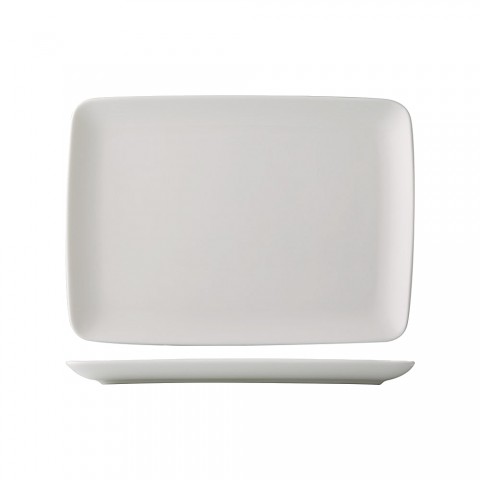 Aurora Platter, 5"L x 3-5/8"W x 3/8"H, rectangular, coupe, glazed foot, dishwasher, oven, and microwave safe, porcelain, Bone White (Sold by case)