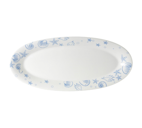 Atlantic Seashell Fishia Platter, 23"L x 10-1/4"W x 2"H, oval, dishwasher, oven, and microwave safe, porcelain, Blue decorated Rim/Super White (Sold by case)