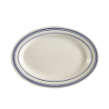 Blue Line Platter, 12-1/2"L x 8-5/8"W x 1-1/2"H, oval, rolled edge, dishwasher, oven and microwave safe, stoneware (ceramic), Blue Band/American White (Sold by case)