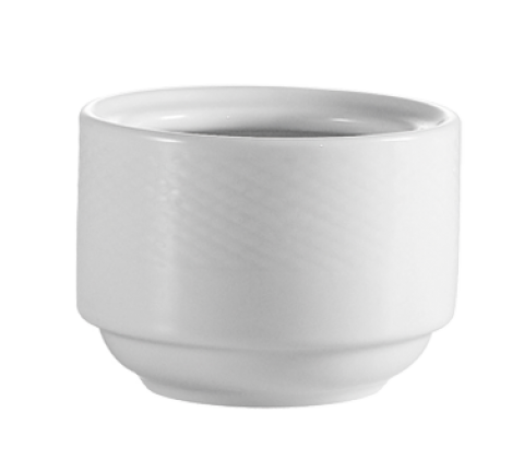 Boston Bouillon Cup, 7-1/2 oz., 4-1/2" dia. x 2"H, round, stackable, embossed, dishwasher, oven and microwave safe, porcelain, Super White (Sold by case)