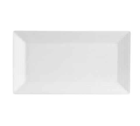 Cambridge Platter, 13"L x 7-1/4"W x 1"H, rectangular, embossed rim, dishwasher, oven and microwave safe, porcelain, Super White (Sold by case)