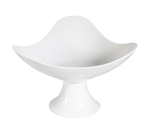 Accessories Cake/Fruit Dish, 12-3/4"L x 12-3/4"W x 8-1/2"H, wavy triangular shape, footed, dishwasher, oven and microwave safe, porcelain, Bone White (Sold by case)
