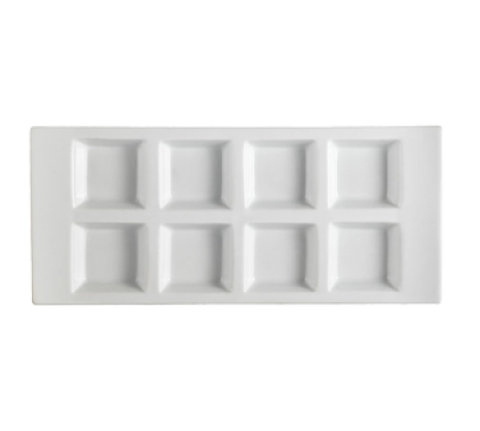 CN Divided Side Dish Plate, 1 oz., per compartment, 13-1/2"L x 6"W x 1-1/8"H, rectangular, 8-compartments, dishwasher, oven and microwave safe, porcelain, Super White (Sold by case)
