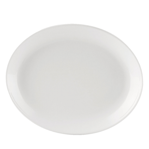 COP™ Platter, 11-1/2"L x 9-1/4"W x 1-1/2"H, oval, coupe, dishwasher, oven and microwave safe, porcelain, Super White (Sold by case)