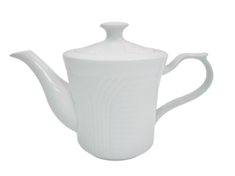 Corona Teapot, 15 oz., 8-1/2"L x 4"W x 5-1/8"H, embossed, with lid, dishwasher, oven and microwave safe, porcelain, Super White (Sold by case)