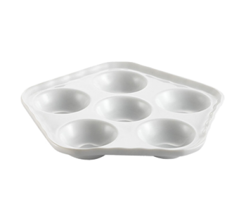 Escargot Dish, 5-1/2" x 5-1/2" x 1-1/4"H, pentagon shape, dishwasher, oven and microwave safe, porcelain, Super White (Sold by case)