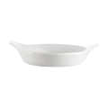 Accessories Dish, 43 oz., 12-1/4" O.L x 10" dia. x 1-3/8"H, round, with French handles, dishwasher, oven and microwave safe, porcelain, Super White (Sold by case)